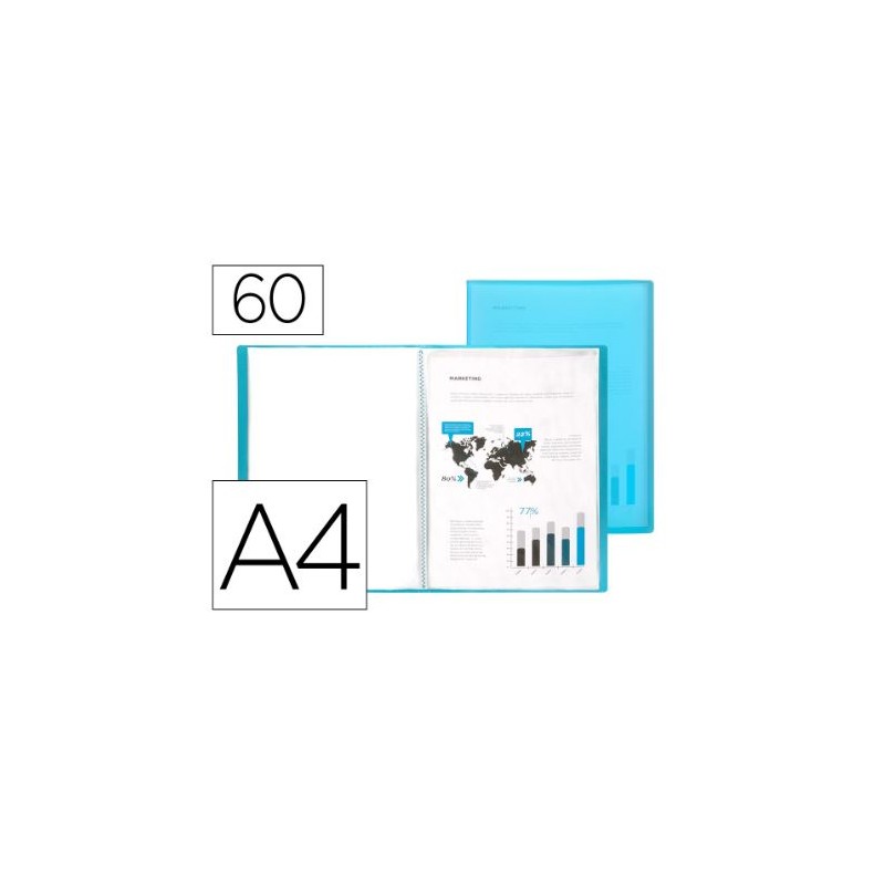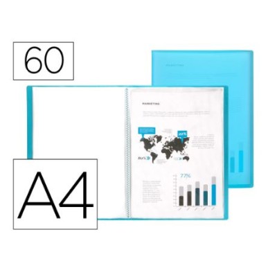 PASTA CATALOGO C/ 60 BOLSAS (MICAS) A4 AZUL TRANSLUCIDA