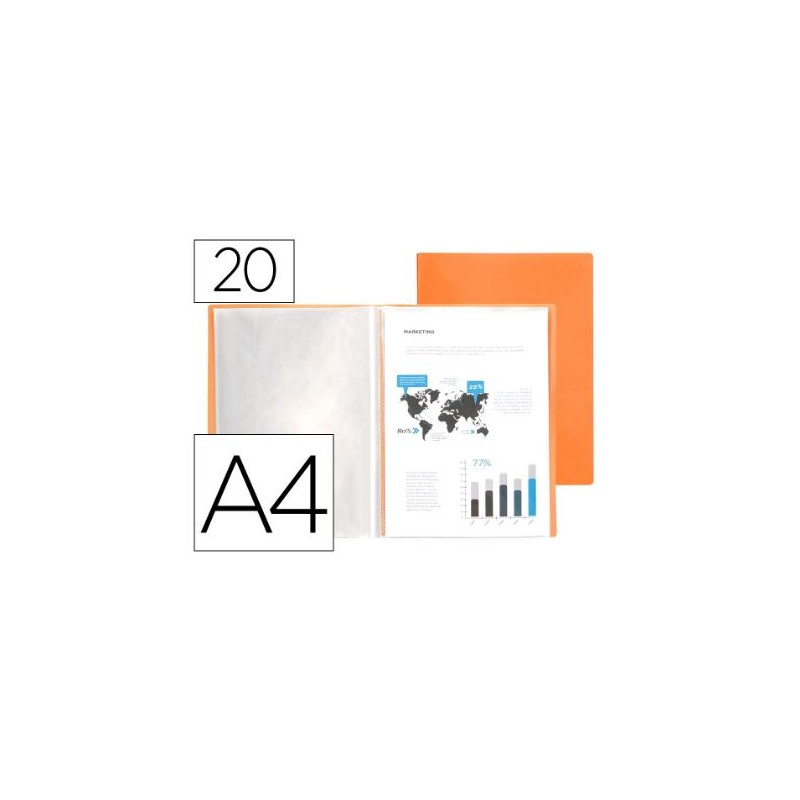 Capa catalogo 20 bolsas em polipropileno din A4. Capa flexível. Formato din a4. Cores opacas. disponíveis com 10, 20, 30 e 40 bolsas.