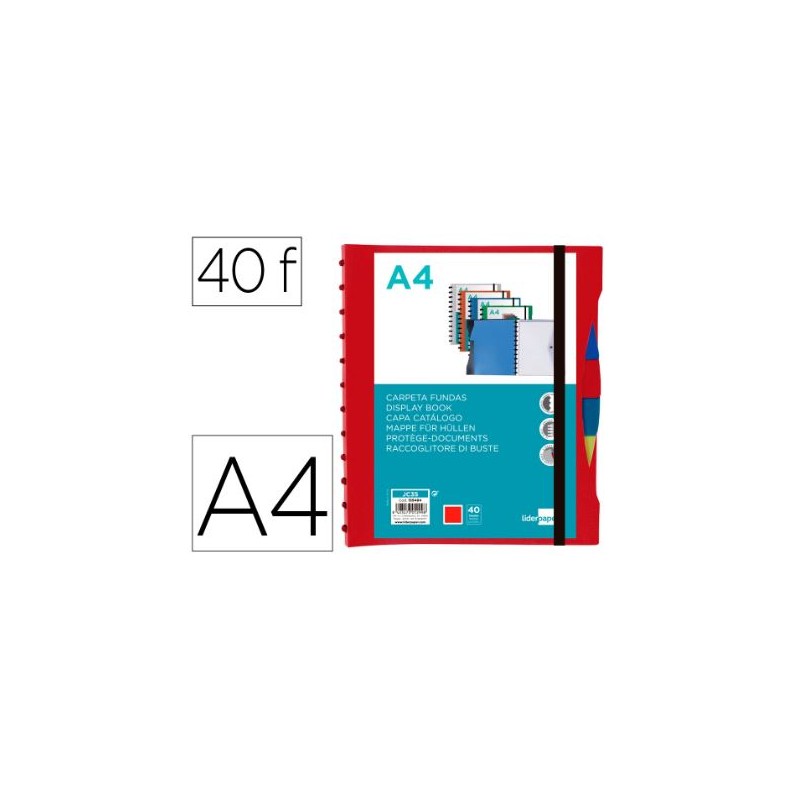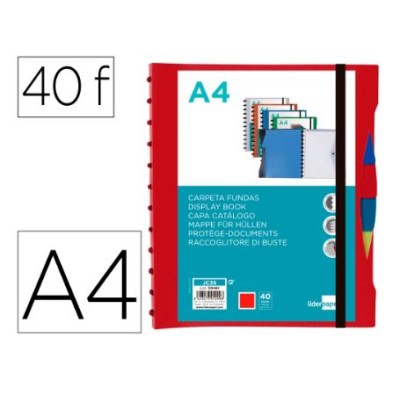 PASTA CATALOGO C/ 40 BOLSAS (MICAS) E SEPARADORES INTERCAMBIAVEIS A4 PERSONALIZAVEL C/ ELASTICO - VERMELHO