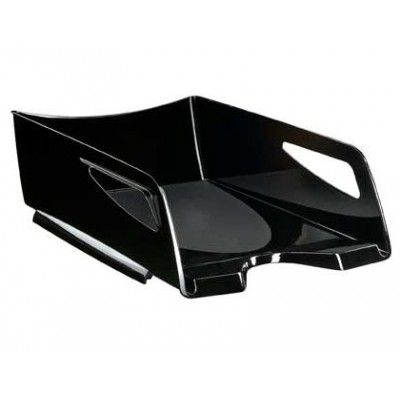 Fabricado em poliestireno. Ampla para as listagens e documentos de tamanho grande. Elegante, prático e muito robusto, as duas asas permitem mover o tabuleiro com muita facilidade. Empilhável. Medidas: 386 x 270 x 115 mm.