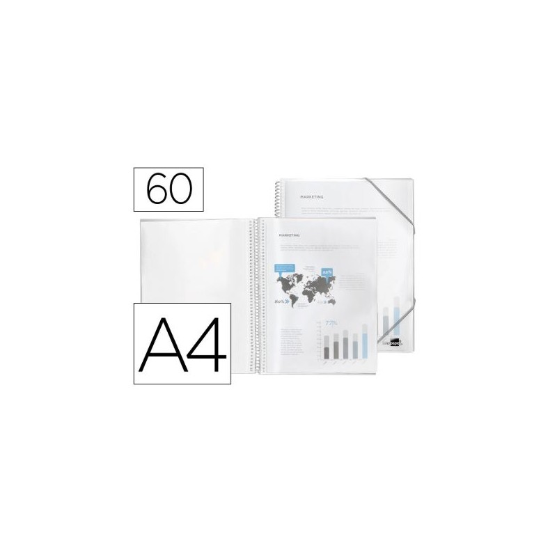 PASTA CATALOGO C/ ESPIRAL RIGIDA C/ 60 BOLSAS (MICAS) A4 TRANSPARENTE