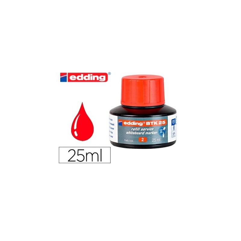 Recarga de tinta com sistema capilar, ideal para recarga limpa e direta de quase todos os marcadores de quadro branco Edding