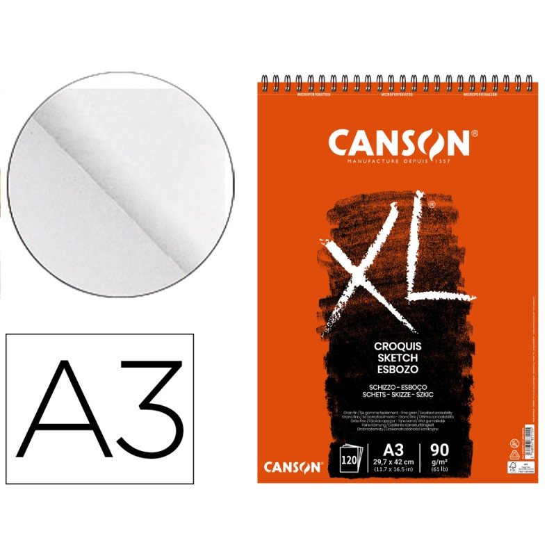 BLOCO ESPIRALADO HORIZONTAL CANSON XL A3 90gr. 120FLS