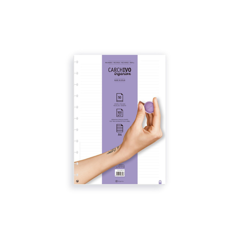 BLOCO RECARGA A4 100gr. 50FLS PAUTADO - P/ CADERNO INTELIGENTE INGENIOX