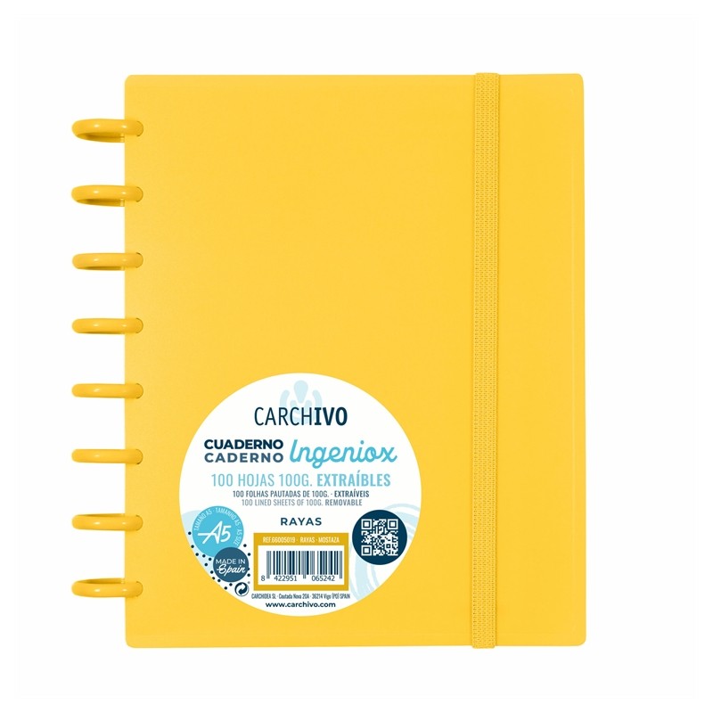 CADERNO INTELIGENTE "PP" INGENIOX A5 100gr. 100FLS PAUTADO COR AMARELO MOSTARDA