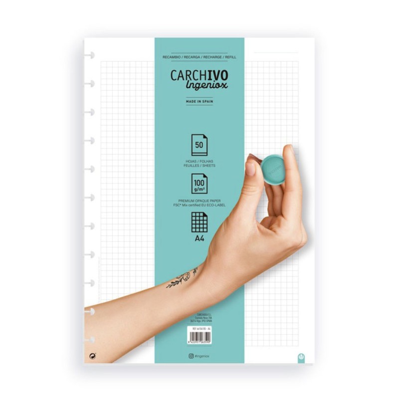 BLOCO RECARGA A4 100gr. 50FLS QUADRICULADO - P/ CADERNO INTELIGENTE INGENIOX