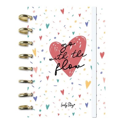 CADERNO INTELIGENTE A5 PAUTADO LOVELY STORY HEARTS "GO WITH THE FLOW"
