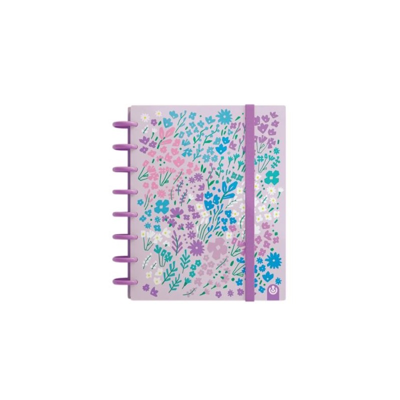 Caderno com sistema de encadernação com discos e folhas removíveis que permite fácil personalização e organização de anotações, anotações e planos de forma rápida e fácil.
