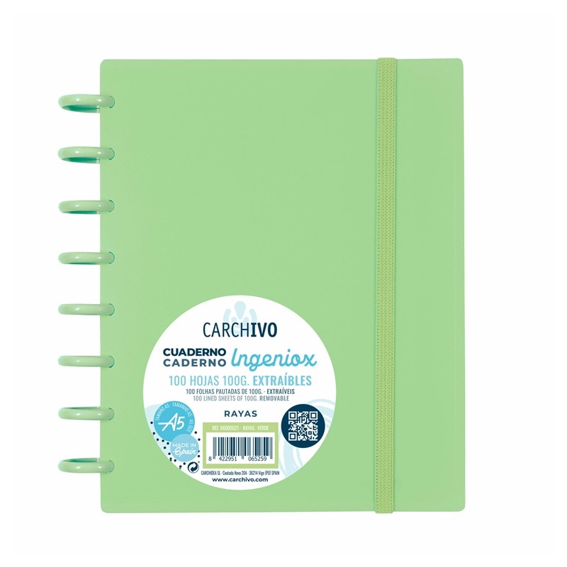 CADERNO INTELIGENTE "PP" INGENIOX A5 100gr. 100FLS PAUTADO COR VERDE LIMA PASTEL