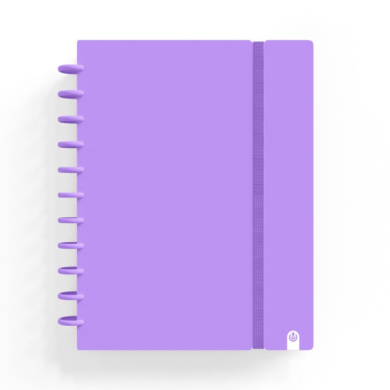 Caderno com sistema de encadernação com discos e folhas removíveis que permite fácil personalização e organização de anotações, anotações e planos de forma rápida e fácil.
