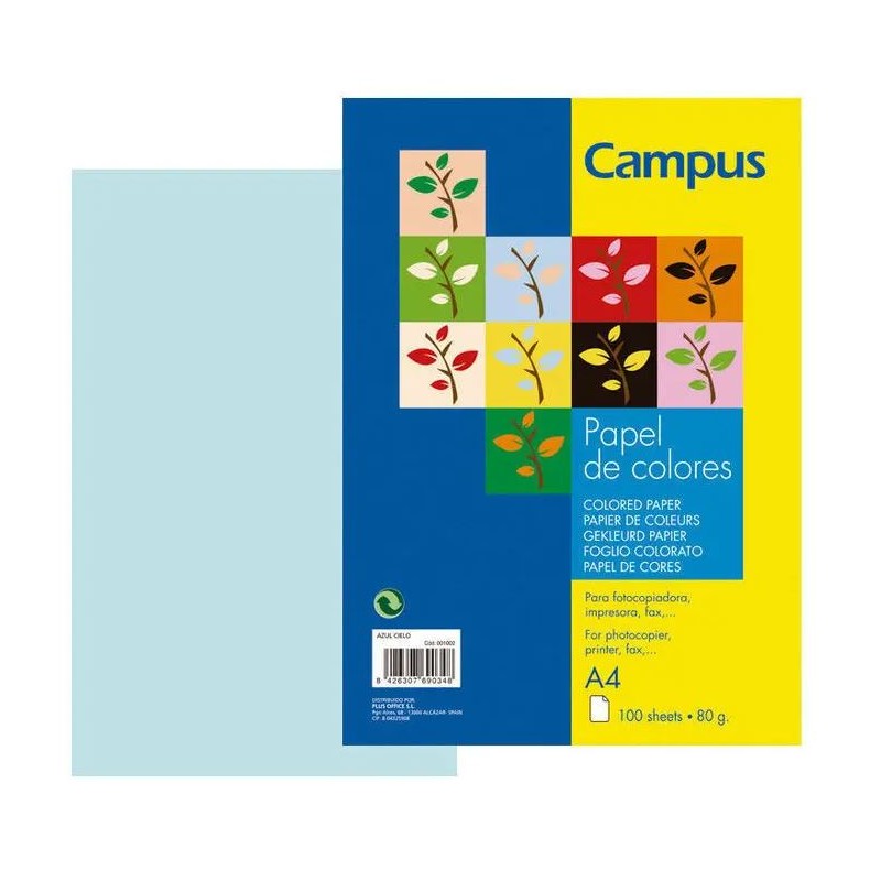 PAPEL FOTOCOPIA A4 80GR. 100FLS AZUL CELESTE