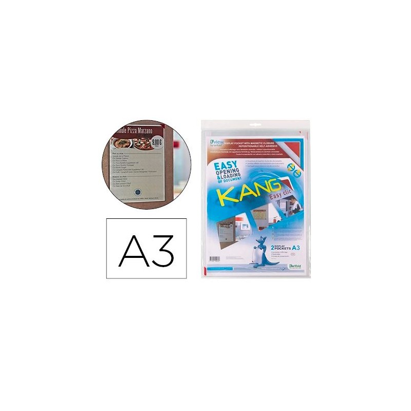 PACK 2x BOLSAS ADESIVAS REMOVIVEL A3 TARIFOLD C/ ESQUINA MAGNETICA