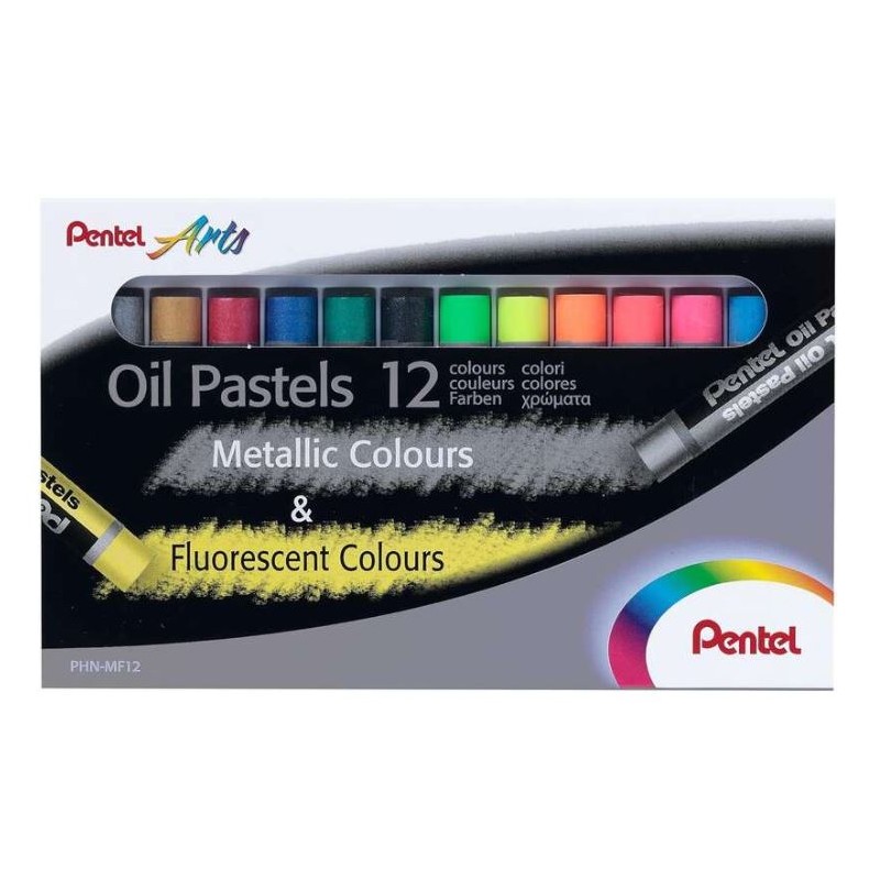 CAIXA C/ 12 x LAPIS PASTEL DE OLEO PENTEL OIL CORES FLUORESCENTES CORES METALICAS