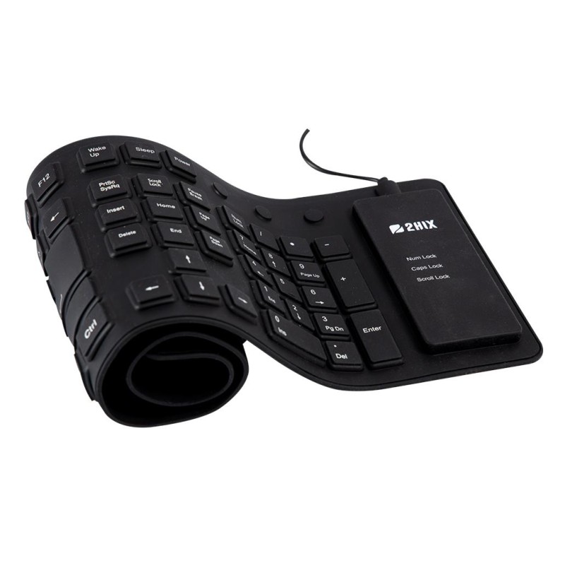 Teclado 2HIX Silicon Lavável e Flexivel USB Preto