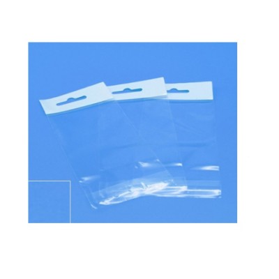 Saco PP Biorientado com pala adesiva, 100% transparente com aba reforçada (película branca no interior) e eurofuro.