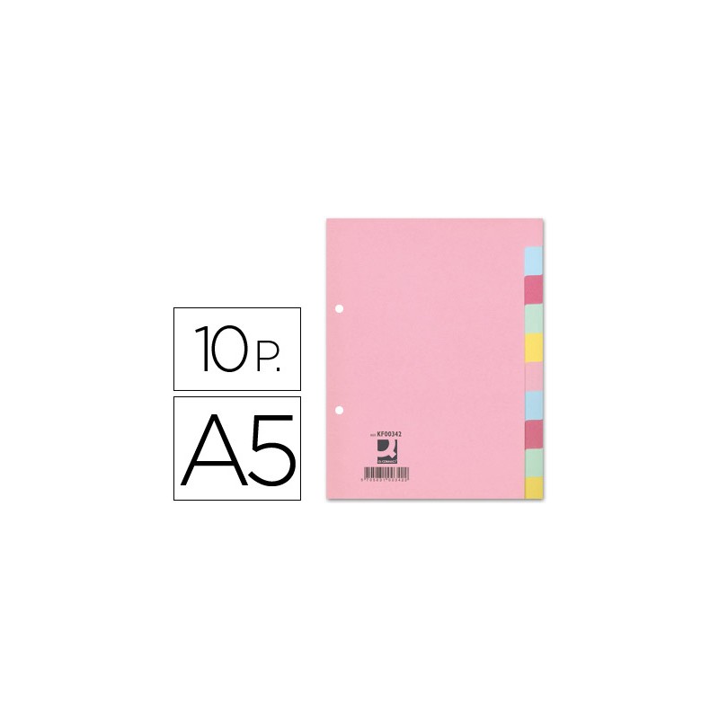 Conjunto de separadores fabricados em cartão de cores pastel. Multiperfurados para arquivar em diferentes ferragens de anéis. Índice em cartolina.