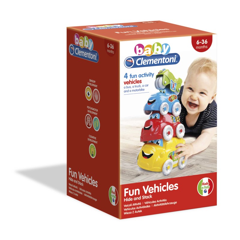 JOGO CLEMENTONI BABY VEICULOS DIVERTIDOS EMPILHAVEIS