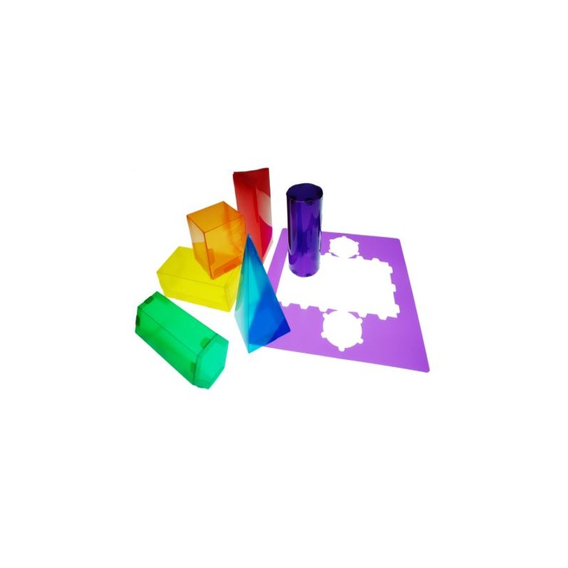 JOGO MODELOS 3D HENBEA PLASTICO FLEXIVEL C/ FORMAS GEOMETRICAS CORES TRANSLUCIDAS 35x35CM