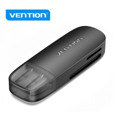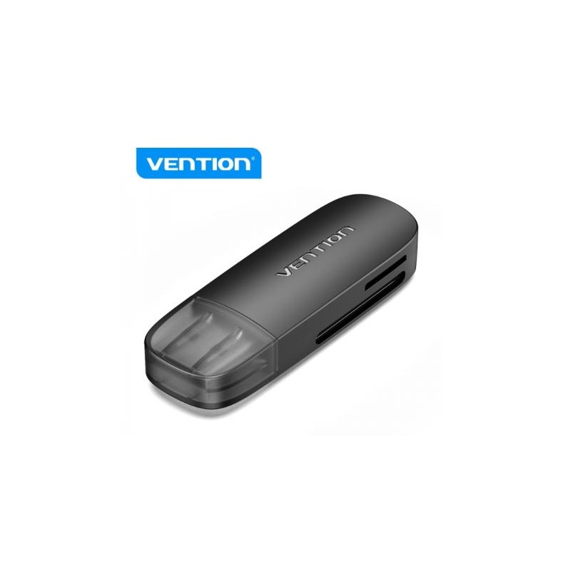 Leitor de cartão Vention 2 em 1 USB 3.0 A (SD+TF) - Leitura única simultânea - Preto