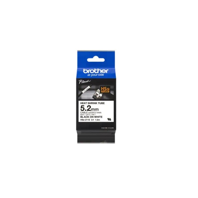 FITA P/ GRAVAÇAO "TERMORETRATIL" BROTHER P-TOUCH HSE211E 5.2MM x 1.5MT TEXTO PRETO / FITA BRANCO