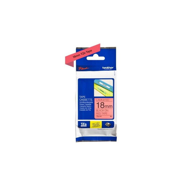FITA P/ GRAVAÇAO BROTHER P-TOUCH TZE441 18MM x 8MT TEXTO PRETO / FITA VERMELHO