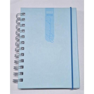 AGENDA ESCOLAR DIARIA EM ESPIRAL 2025/26 120x165MM 12 MESES PAIRO AZUL PASTEL C/ ELASTICO