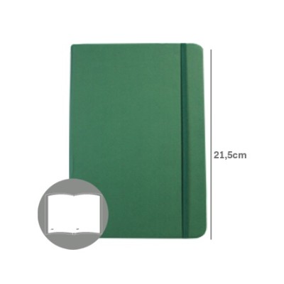 BLOCO NOTAS LISO 215x145mm 116FLS CAPA SEMI PELE VERDE ESMERALDA C/ELASTICO