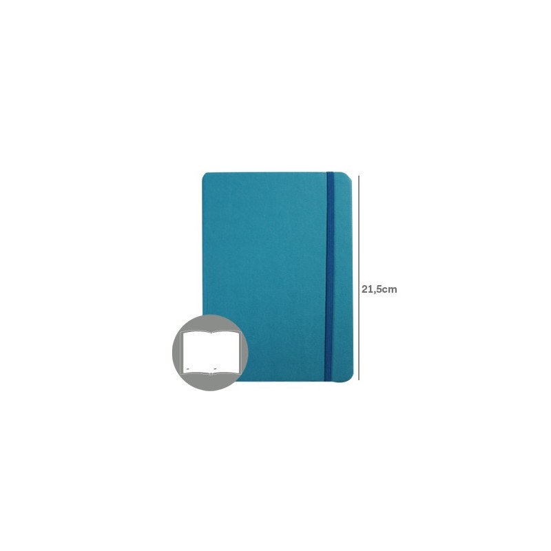 BLOCO NOTAS LISO 215x145mm 116FLS CAPA SEMI PELE AZUL TURQUESA C/ELASTICO