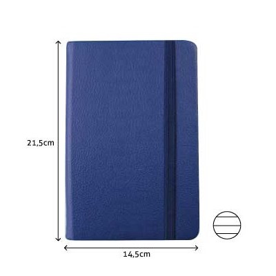 BLOCO NOTAS PAUTADO 215x145mm 116FLS CAPA SEMI PELE AZUL C/ELASTICO