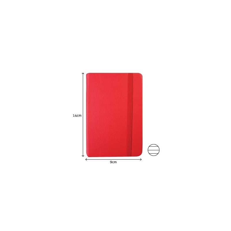 BLOCO NOTAS PAUTADO 140x90mm 116FLS CAPA SEMI PELE VERMELHO C/ELASTICO