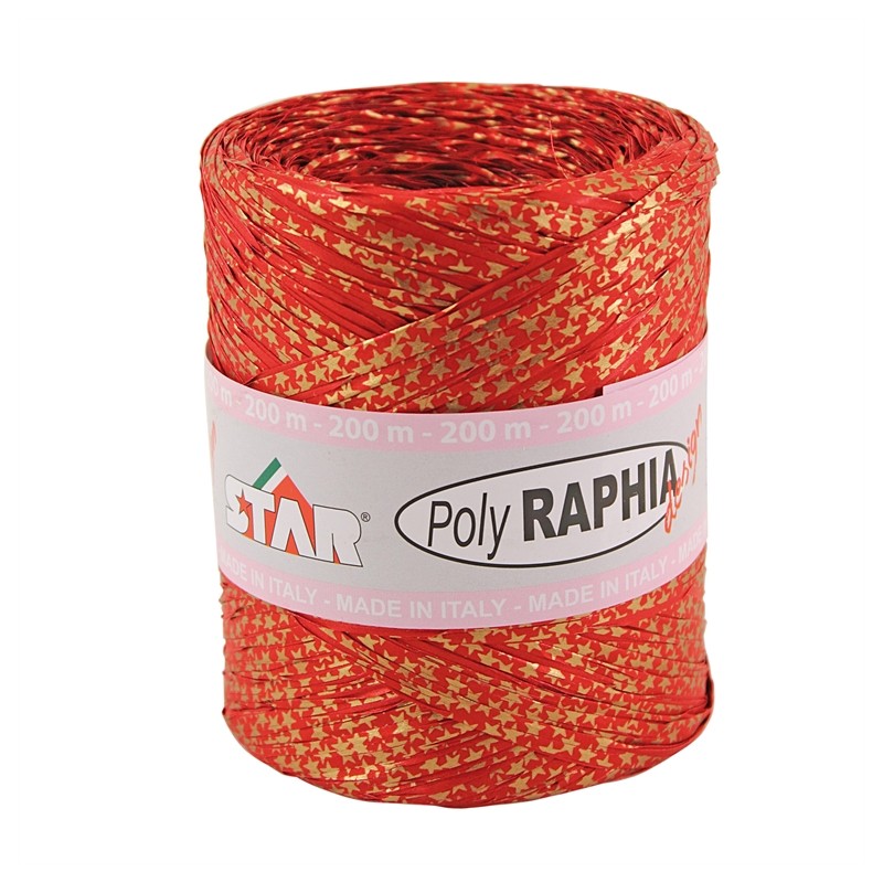ROLO RAFIA POLYRAPHIA 15MMx200MT 00C/3801 VERMELHO C/ ESTRELAS DOURADAS