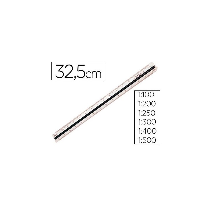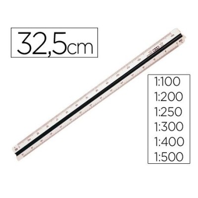Escala mor 1632.20 -1:100-200-250-300-400-500 -30 cm estojo rigido. Triangular, branca, de 30 cm de comprimento. 6 divisões. Estojo individual rígido pvc. Escalas 1:100, 1:200, 1:250, 1:300, 1:400 e 1:500. Para arquitetura.
