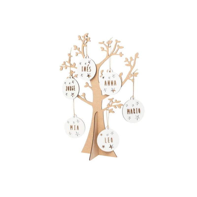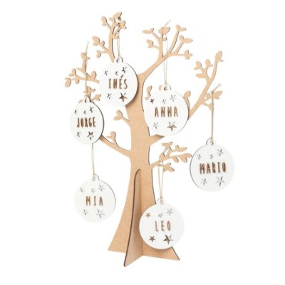 ARVORES DA VIDA EM MADEIRA 37CM PERSONALIZAVEL C/ 6 BALOES