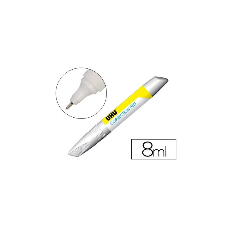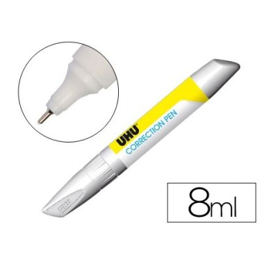 Corretor caneta uhu 8ml. Ponta de metal fina. Indicada para correções precisas. Fórmula de secagem muito rápida. Fabricado em plástico polido e reciclado. Contém: 8 ml.
