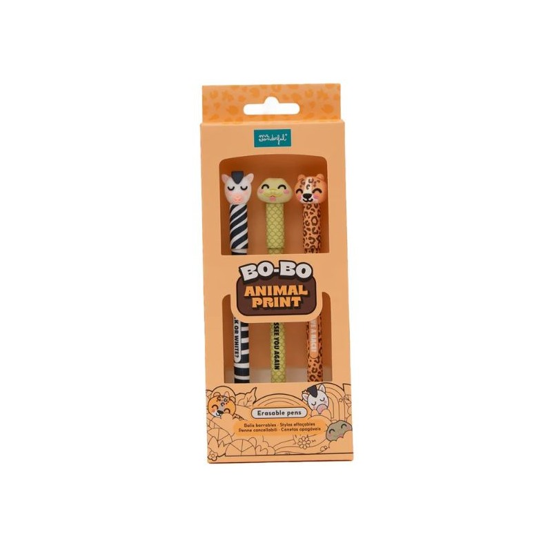 Descobre o teu lado mais selvagem com este conjunto de 3 canetas apagáveis Bo-Bo.