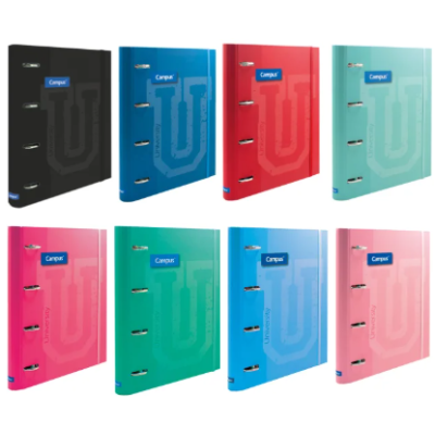 PASTA ARQUIVO CAMPUS CAPA DURA L/E 40MM 4 ARGOLAS C/RECARGA PAPEL - CORES SORTIDAS