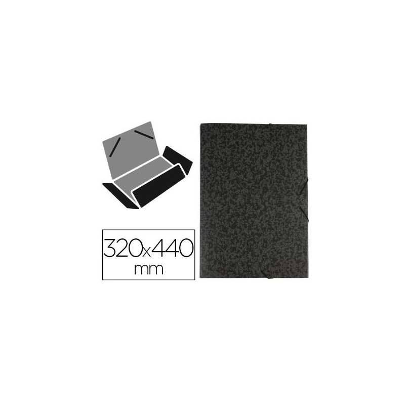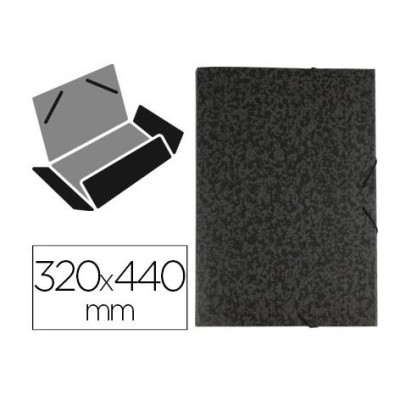 Pastas em cartão fibra com abas e elásticos. Cor marmoreado preto. Elevada resistência.