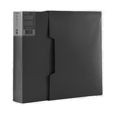 PASTA CATALOGO C/ 100 BOLSAS (MICAS) A4 C/ CAIXA EXTERIOR EM POLIPROPILENO PRETO