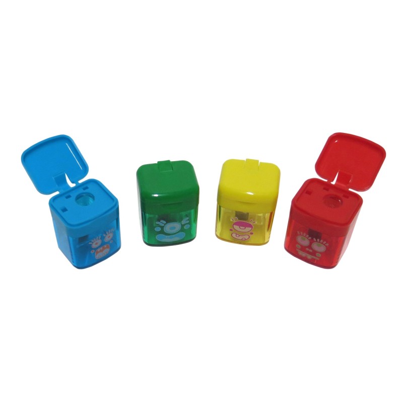 Combinação de borracha com afia duplo (tamanhos standard e MAXI) com depósito. Design COMPACTO, série Sunset. Borracha quadrada de borracha sintética. A afia tem uma lâmina de aço afiada e resistente que o torna ideal para todas as variedades de lápis. Sistema de lâmina de segurança que evita que a lâmina se solte do corpo da afia. 4 cores sortidas: amarelo, violeta, rosa e verde. Design original criado pelo próprio departamento de P+D da MILAN. 430 borrachas de reposição disponíveis.