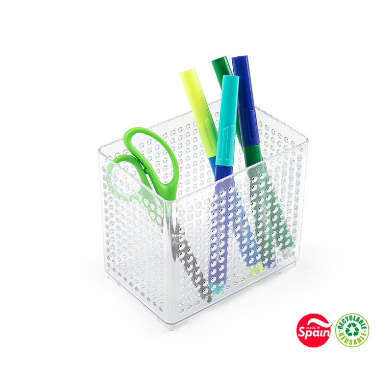 COPO SECRETARIA PORTA LAPIS/CANETAS PLASTICO QUADRADO TRANSPARENTE - MICROPERFURADO