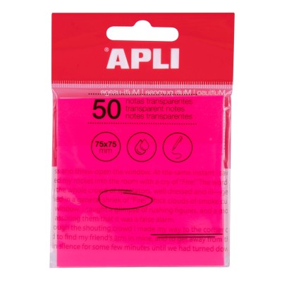 BLOCO NOTAS / POST IT APLI 75x75mm 50FLS TRANSLUCIDO ROSA