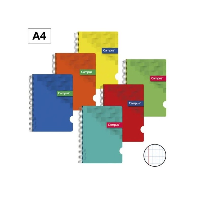 CADERNO ESPIRAL CAPA PLASTICA CAMPUS A4 80FLS 90gr. QUADRICULADO CORES VIVAS SORTIDAS