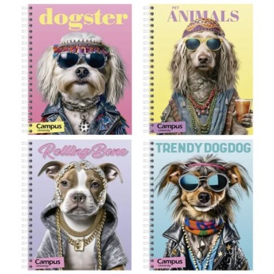 CADERNO ESPIRAL CAPA DURA CAMPUS A4 90gr. 80FLS QUADRICULADO CORES SORTIDAS "DOG"