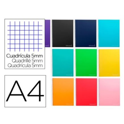 CADERNO ESPIRAL CAPA DURA LP A4 75gr. 140FLS QUADRICULADO CORES SORTIDAS