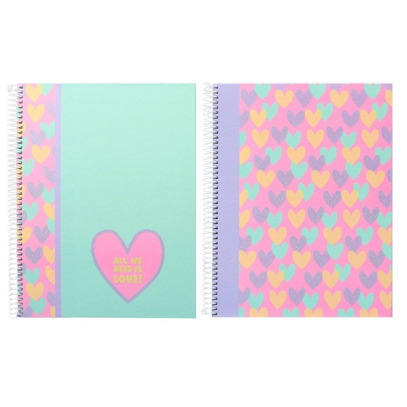 CADERNO ESPIRAL CAPA DURA ANCOR B´LOG HEARTS A5 90gr. 80FLS QUADRICULADO CORES SORTIDAS