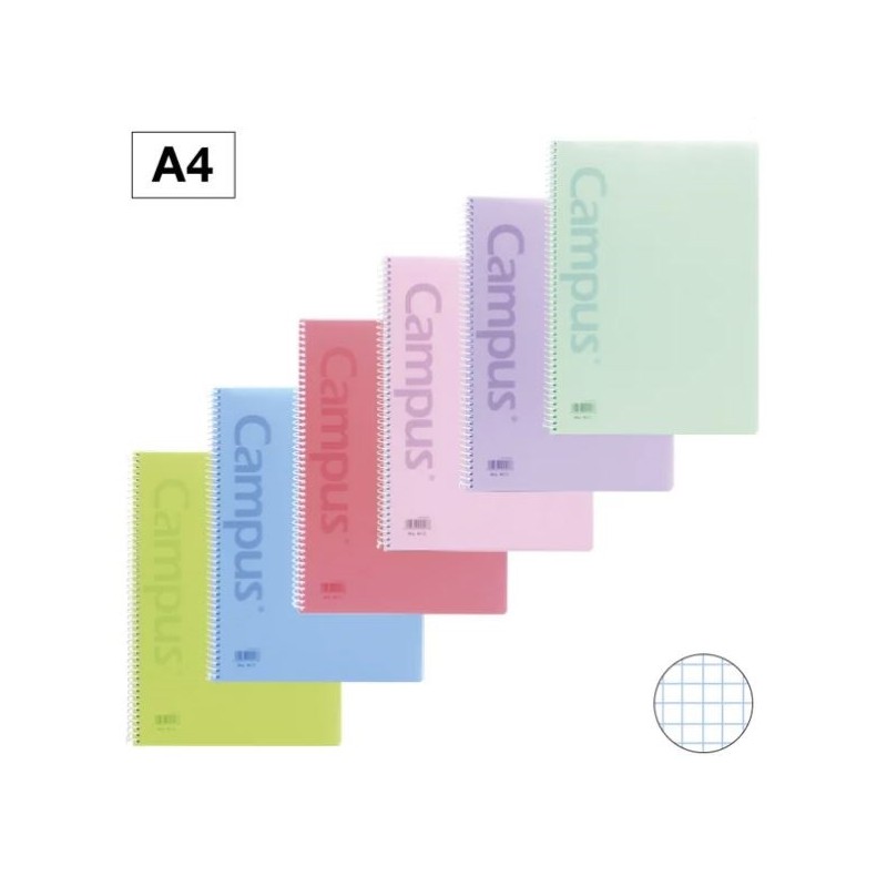 CADERNO ESPIRAL CAPA PLASTICA CAMPUS A4 80FLS 90gr. QUADRICULADO(4MM) CORES PASTEL SORTIDAS
