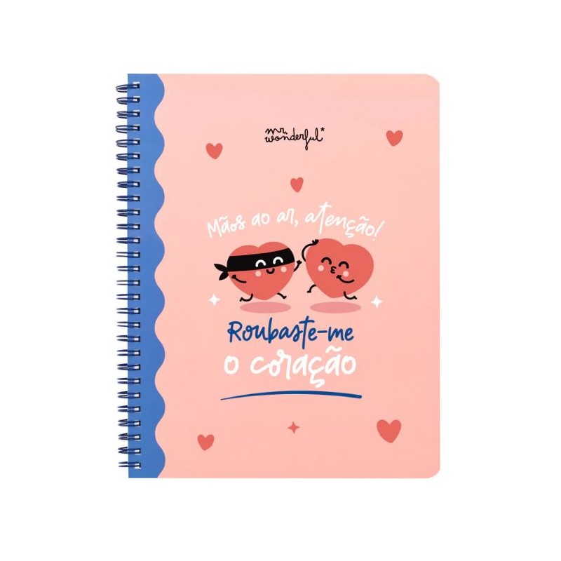 CADERNO ESPIRAL A5 PAUTADO MR WONDERFUL - ATENÇÃO! ROUBAS-ME O MEU CORAÇÃO
