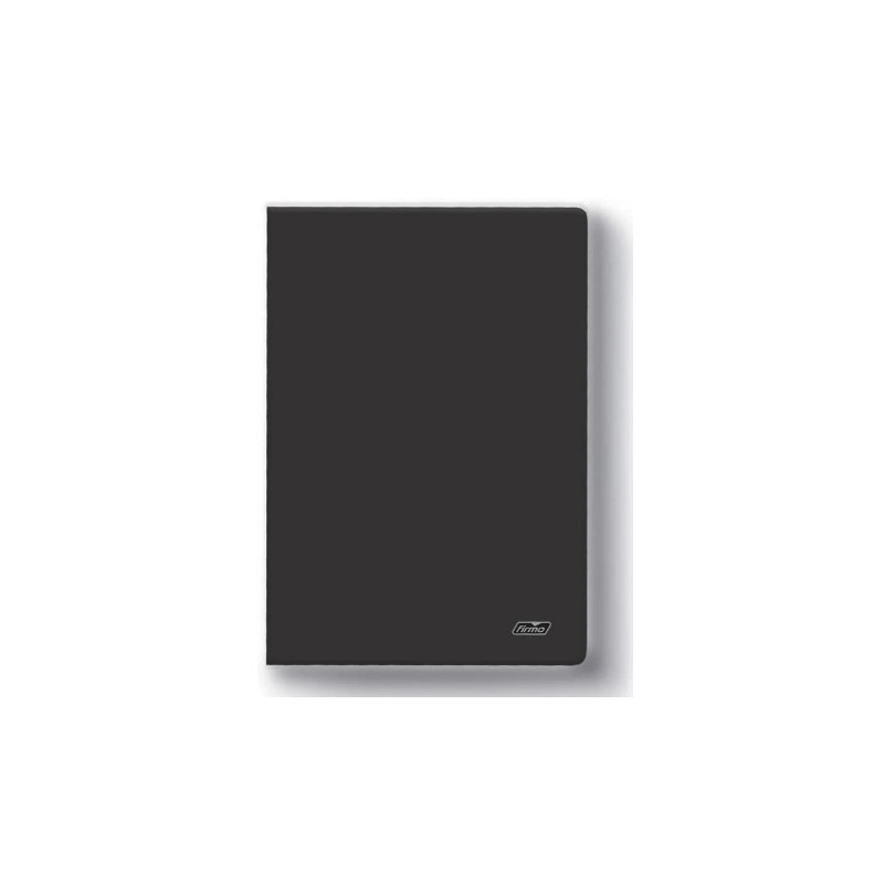 Caderno agrafado. 80 folhas. Papel de 60 g/m². Cor preto. Margem dupla.