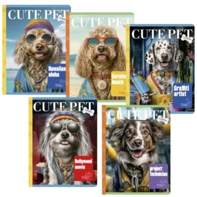 CADERNO AGRF/COZIDO A4 90gr. 48FLS PAUTADO CAPAS COLORIDAS "DOG"