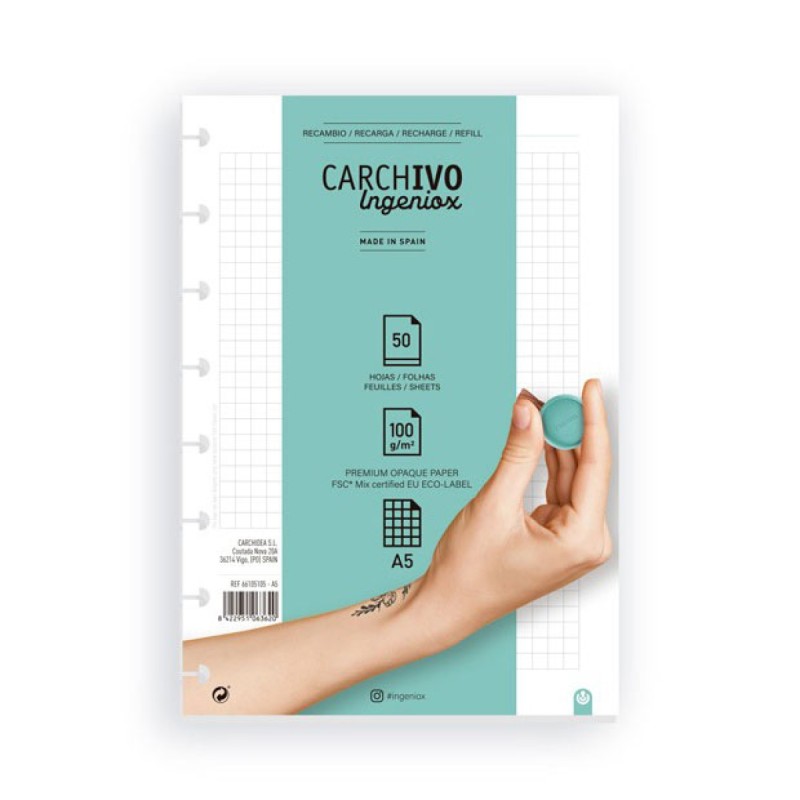BLOCO RECARGA A5 100gr. 50FLS QUADRICULADO - P/ CADERNO INTELIGENTE INGENIOX